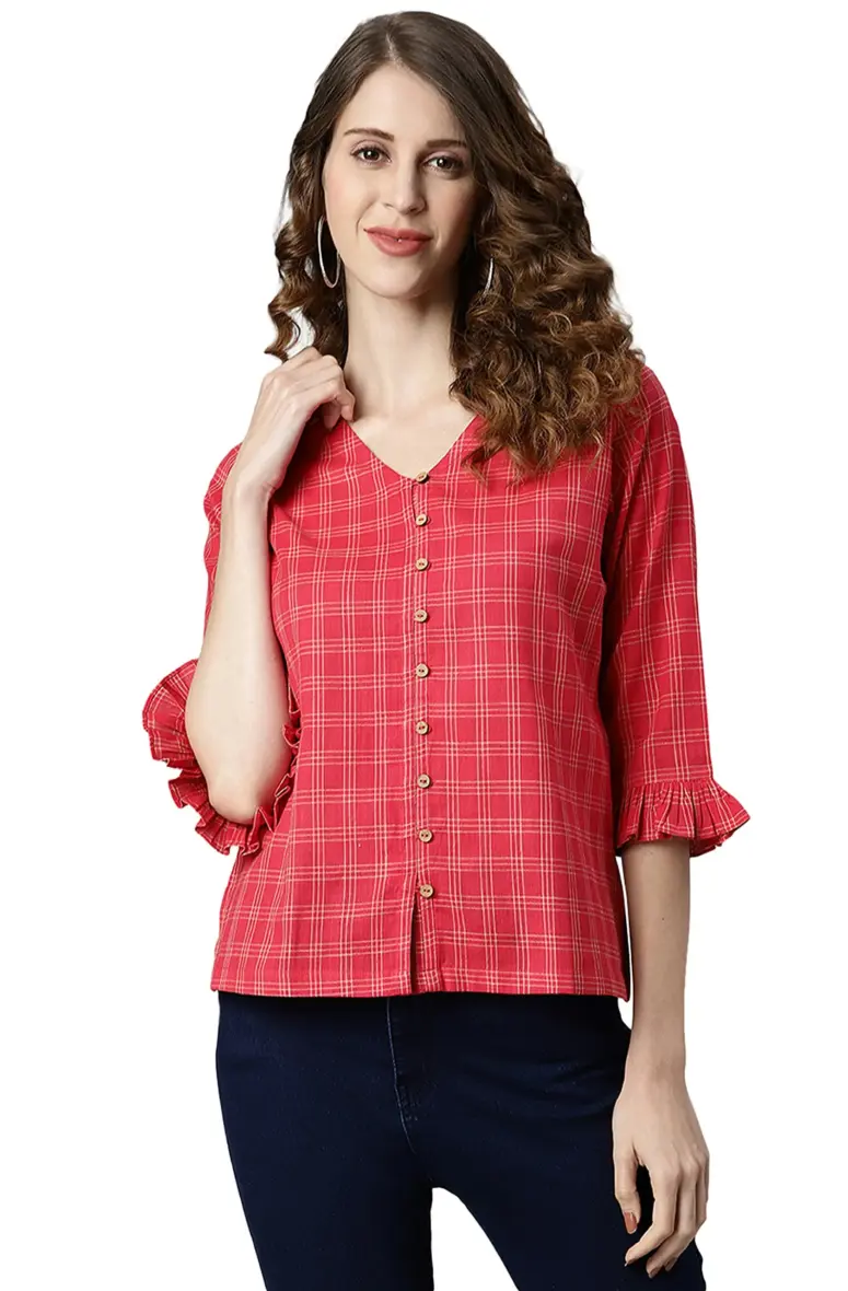 - Style:- Length: 23(inch) | Pattern: Checkered | Occasion: Casual | Type: Regular| Sleeve Type: 3/4 Sleeve (Bell Sleeve) | Color: Red