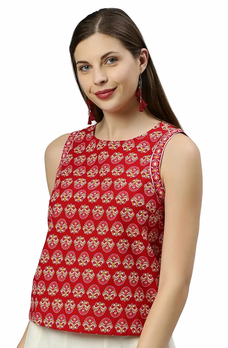 - Style:- Length: 22(inch) | Pattern: Floral Print | Occasion: Casual | Type: Regular| Sleeve Type: Sleeveless (Sleeveless) | Color: Red