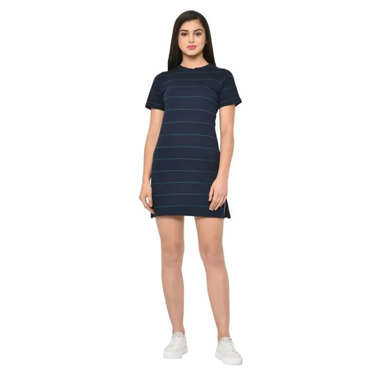 RIGO Cotton Blend Stripped Midi Dress For Women (M, Navy)